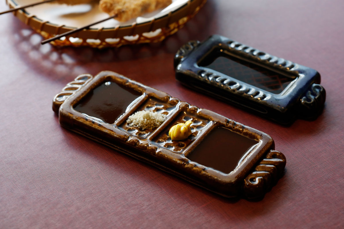 銀座4丁目の街並みを見下ろす空間で40年以上親しまれる串揚げ専門店。常時30種類以上、年間100種類以上の串揚げが味わえます。旬の素材を秘伝のねりやと特製の細目のパン粉をつけ、数種類のブレンド油で揚げることでふわっと香ばしい串揚げに。