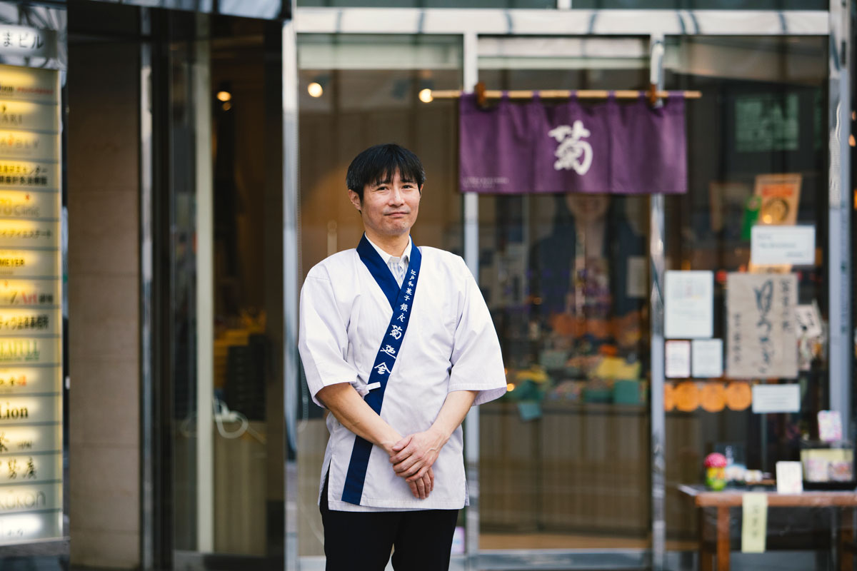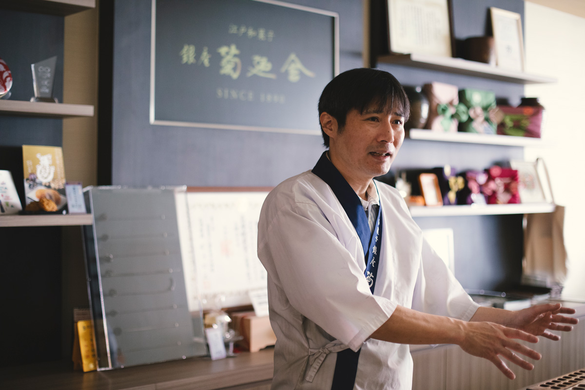 1975年東京生まれ。大学卒業後、「銀座 菊廼舎」に入社。8年間家業に従事した後、一度退職し、システムエンジニアとしてIT企業に勤務。2011年「銀座 菊廼舎」に復職し専務取締役、2014年代表取締役に就任した。前職の経験を活かしたネット販売が好評