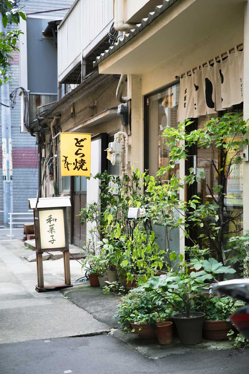 半月形のどら焼きで知られる、歌舞伎座の裏手にある創業100年超えの和菓子屋。