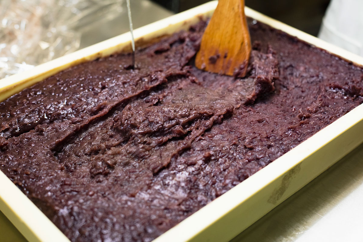 ガラス越しに、生粋の和菓子職人による和菓子作りの様子を眺められるのも貴重な体験。