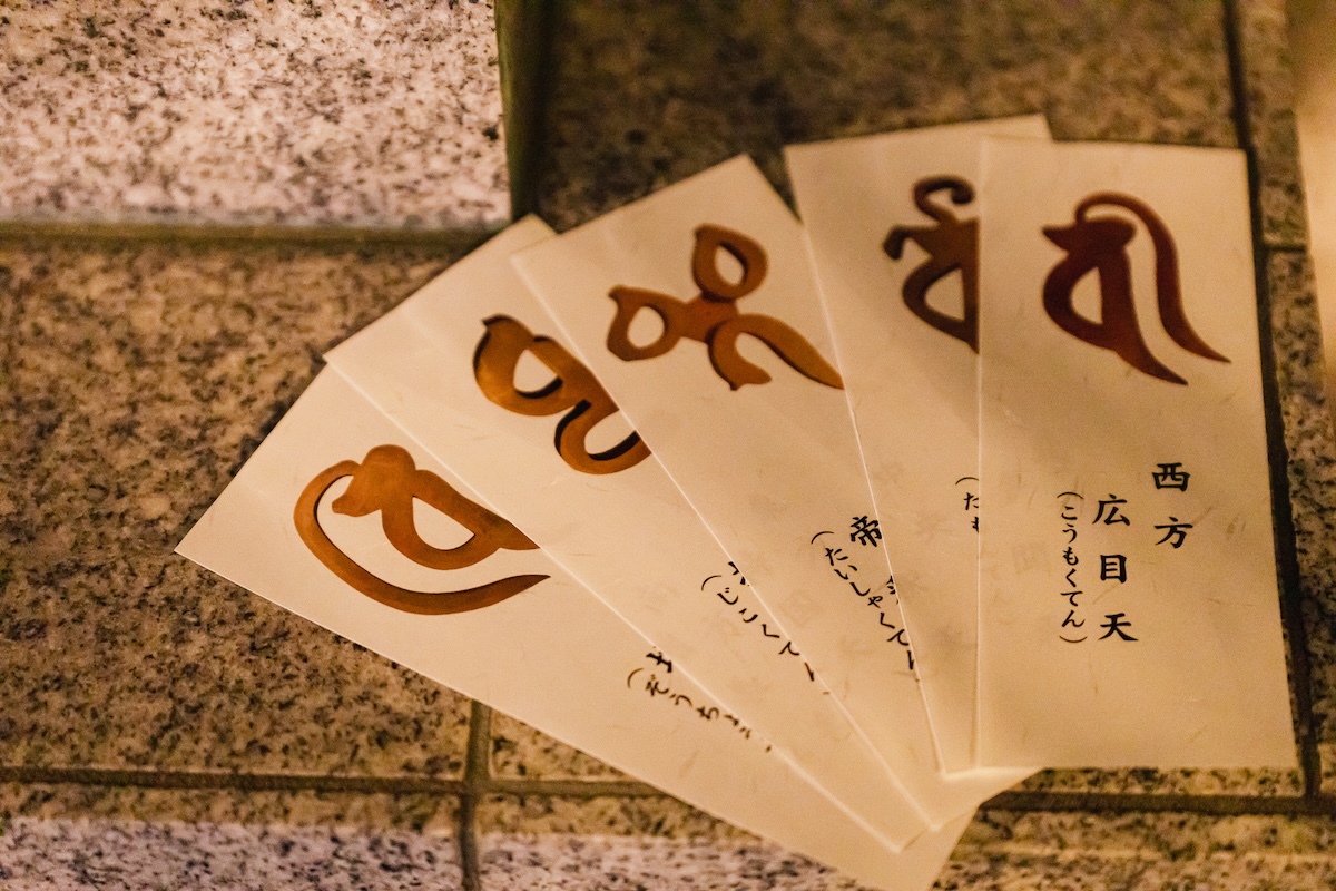 小田さん:“守り神”とは、松屋銀座を守るために実際に1階の各所で祀られている四天王と帝釈天の、5つの梵字のことです。各階で百貨店おばけとともに行う、ゲームやじゃんけんなどのミッションをクリアの証として、梵字のお札を渡しました。
