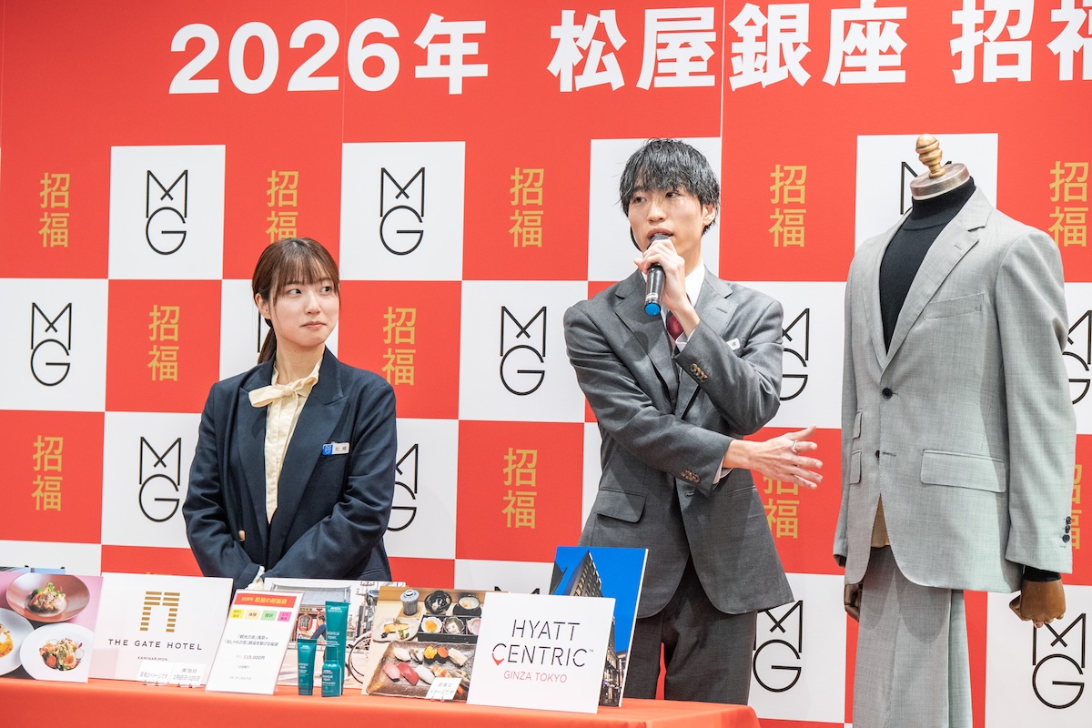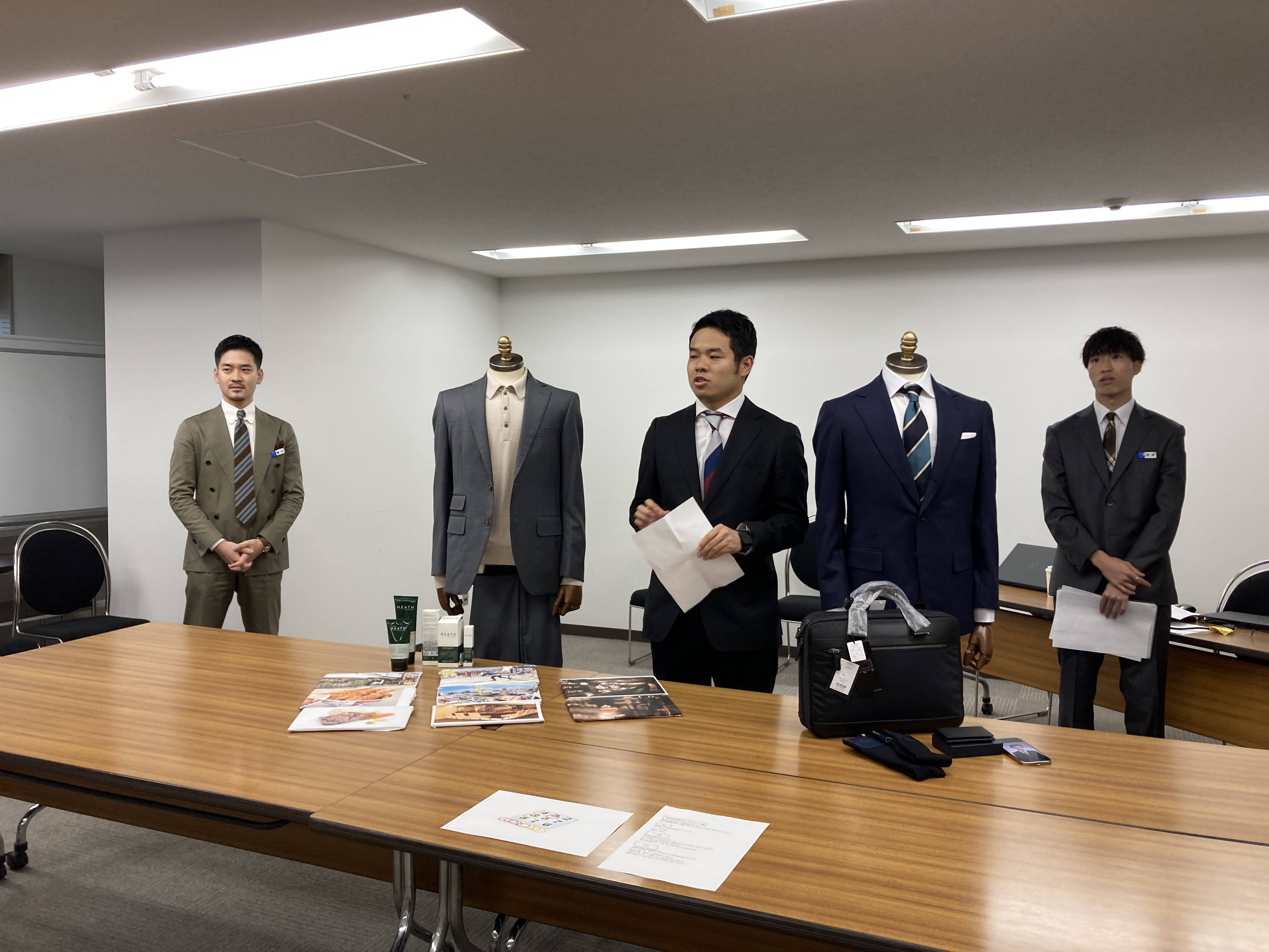 最後はおしゃれをして、街を越えて、街を楽しむ福袋を。紳士雑貨・ドレスアップラウンジの福袋は、松屋こだわりのパターンオーダースーツを作る体験とともに、松屋が店舗を構える浅草と銀座を満喫する内容で、入社1年目・2年目のルーキー4人が担当しました。