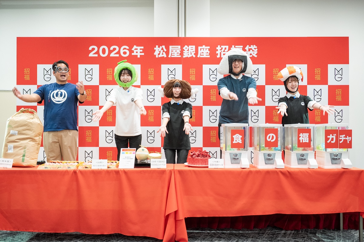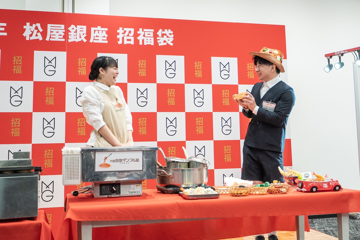 多くの福袋が、入社してまだ日の浅い若手社員チームが企画したもの。数カ月間の準備・検討期間を経て、去る2025年10月6日、「寄せ見」という社内プレゼンで発表。そこで受けたフィードバックを元に内容をブラッシュアップし、晴れて11月4日にリハーサル、そして11月5日、メディアに向けて内覧会を行いました。当日は、コスプレあり、被り物あり、寸劇ありの明るく楽しいひとときとなりました。
