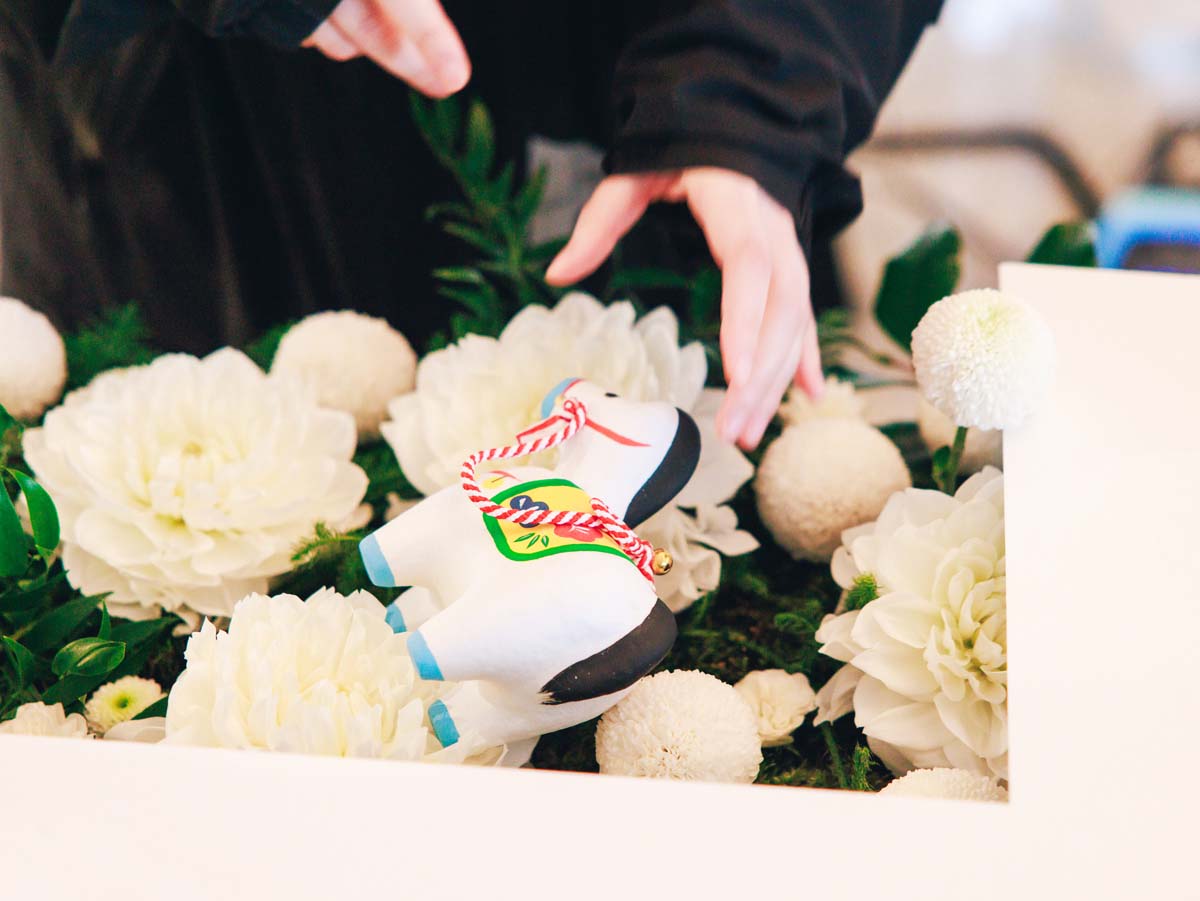 ――フラワーコーディネーターからは、お正月を意識して、洋風になりすぎないよう、マムやダリアなどキク科の花を中心に選んだとお聞きました。