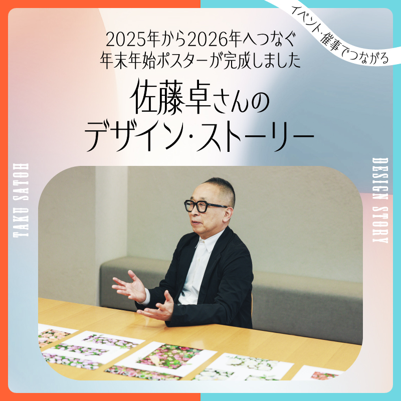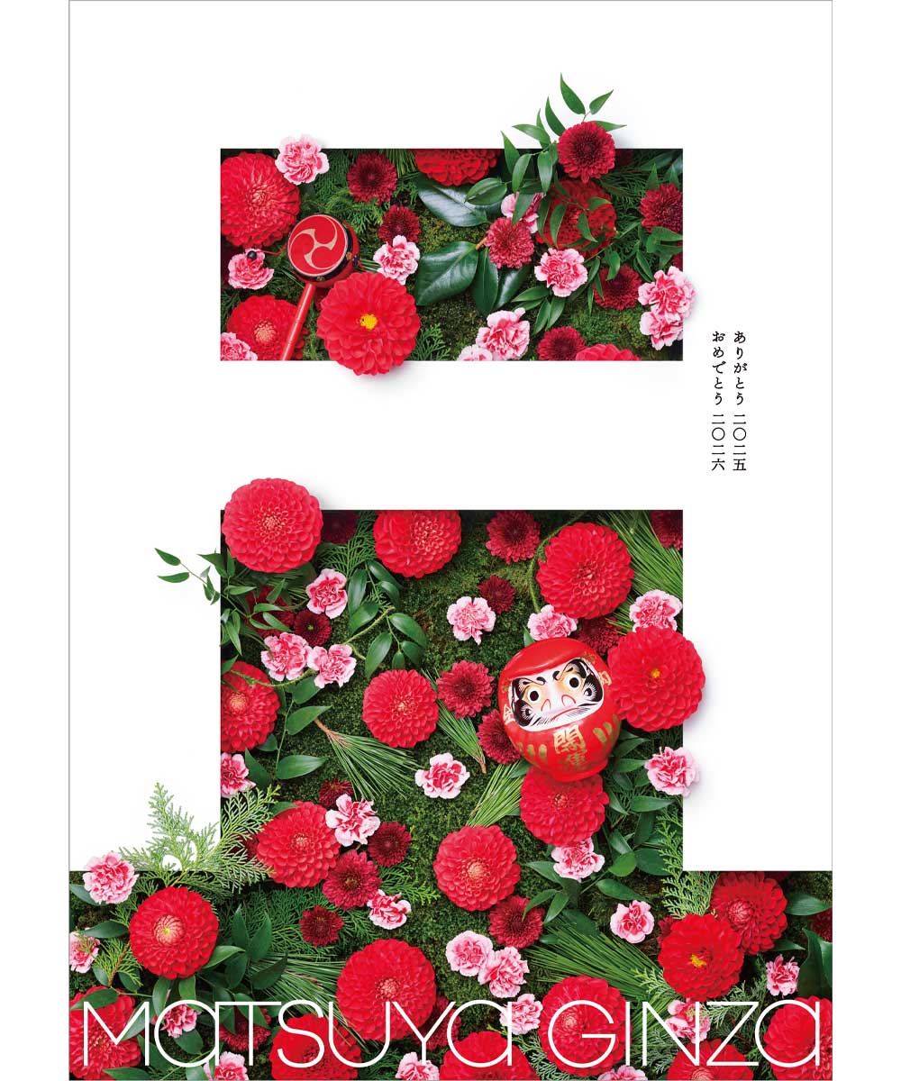 2025年12月26日(金)―2026年1月13日(火)、地下通路にて、松屋銀座の年末年始を彩る「ありがとう2025おめでとう2026」のポスターが公開されます。デザインを手がけるのは、長きにわたって日本のグラフィックデザイン界を牽引してきた佐藤卓さん。8枚のポスターの艶やかな花々と、白いMATSUYAのロゴが生み出す美しきデザインを楽しんで。