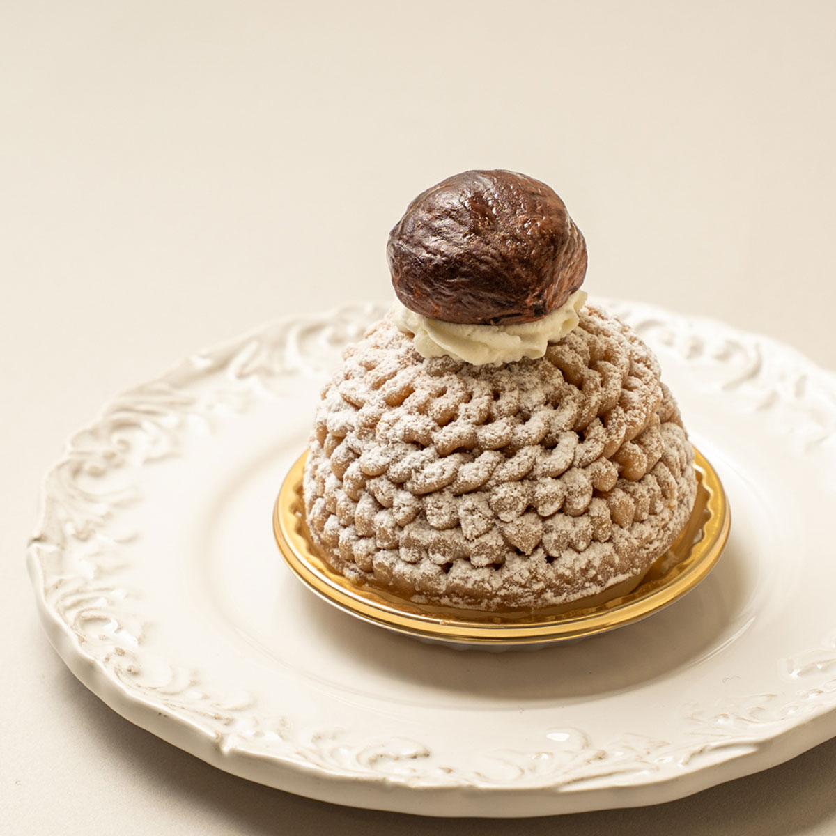 キャンティを代表する和栗を使った贅沢なモンブランに、熊本南部にある栗の名産地、球磨郡山江村で採れる極上の和栗、やまえ栗を使用したのがこちらの特製モンブランです。夏と冬、昼夜の寒暖差も激しい、盆地特有の気候の中で育った栗は甘味が強く大ぶり。渋皮付きのまま煮る渋皮煮でやまえ栗のおいしさをダイレクトに味わえるのもこだわりです。キャンティのモンブランとの親和性も感じていただけたらと思います。