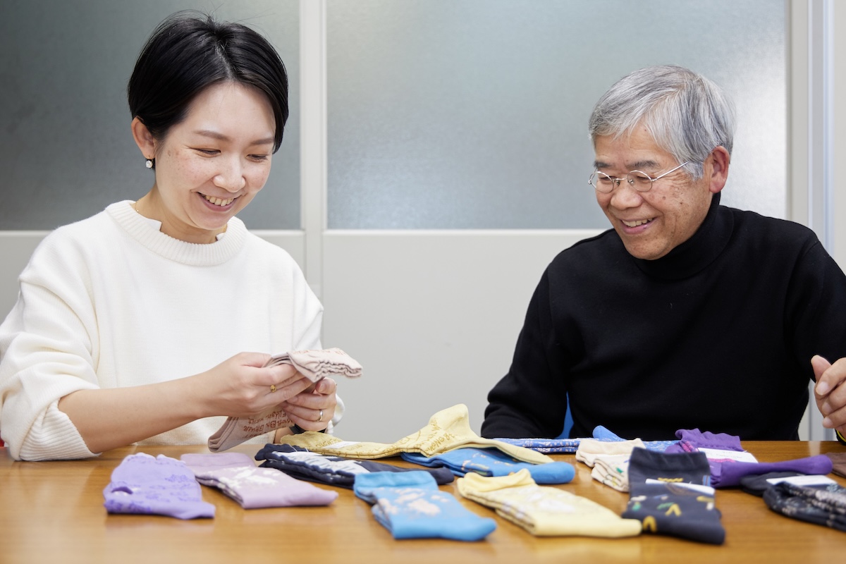 「歴史的に見て、靴下とは高価な贈答品だったのですが、現在は、3足1,000円といった大量生産品が普及し、価値が低下しています。それをなんとか改善したい。そこには作り手の意識転換と価格や柄、企画といった新しい枠組みに挑戦しなくてはなりません。自分のブランドを作っていく上でももちろんのこと、価値の再設定を図る上でも、とても頼りになるメンバーではないか、と思っています」