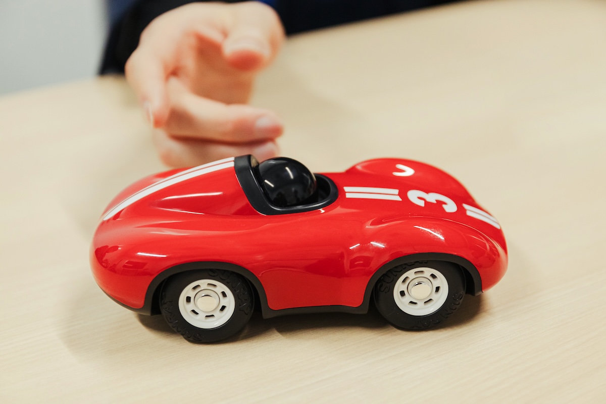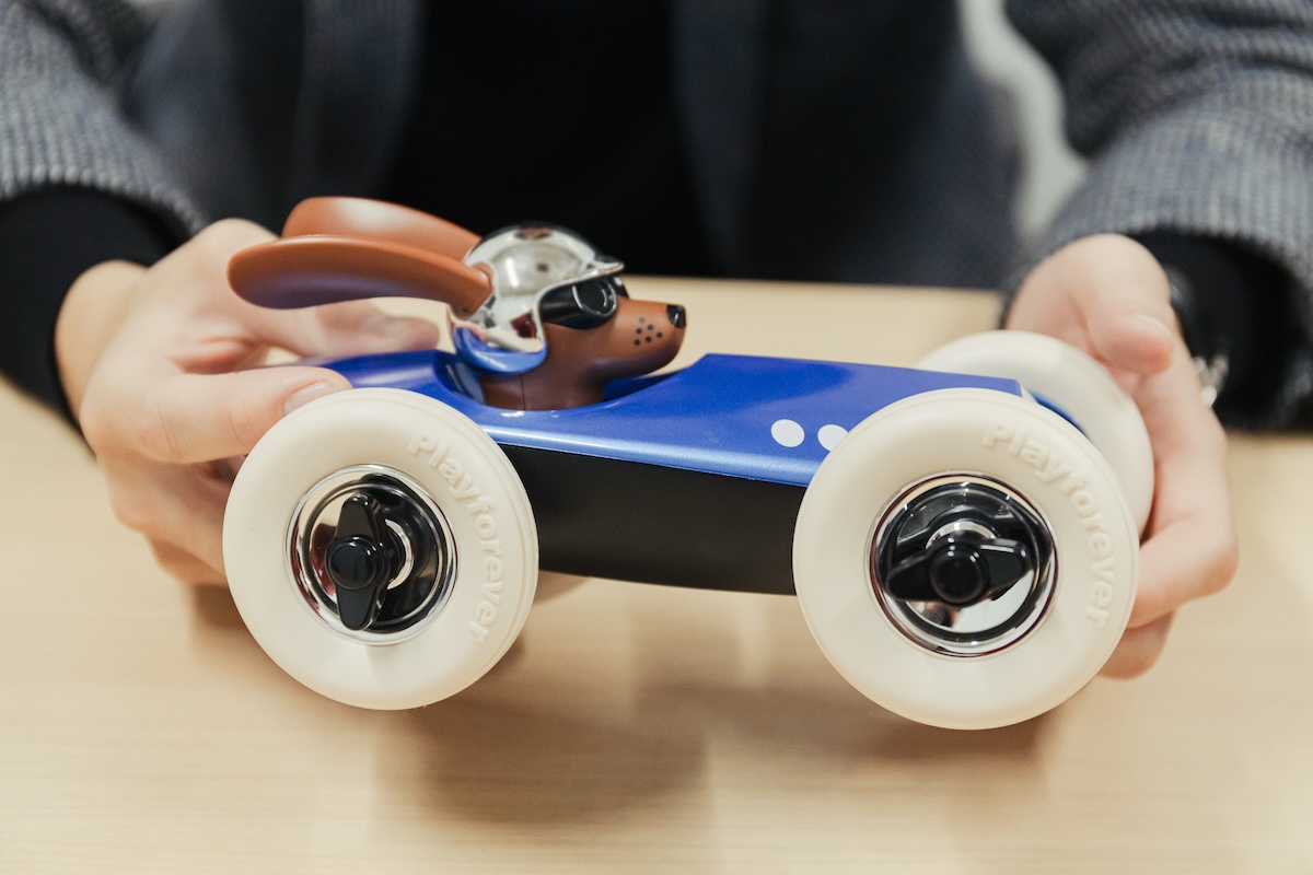 蓑輪さん:僕のイチ押しは、<Playforever(プレイフォーエバー)>という、クラシックカーをモチーフとしたイギリスのデザイントイです。これは、日本デザインコミッティーのメンバーであるプロダクトデザイナーの深澤直人さんの推薦なんですよ。ほかにもいろいろな色と形があって、僕がこのワンちゃんのシリーズも追加しました。