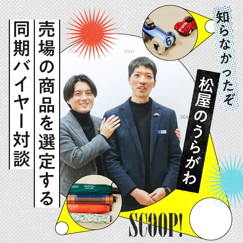 今回ご登場いただいたのは、100周年を迎える松屋銀座でデザインとファッションの最前線に⽴つ同期バイヤー2人、7階のデザインコレクションを担当する蓑輪正太郎さんと、3階の婦⼈雑貨を担当する伊勢田京平さん。“そもそも百貨店バイヤーの仕事とは?”にはじまり、松屋銀座らしい価値ある⼀品をセレクトするためのこだわりや、ご本人が⾃腹買いしたい「イチ推し商品」まで、同期の関係性だからこそ語り合える、ストーリーが詰まった対談をお届けします。